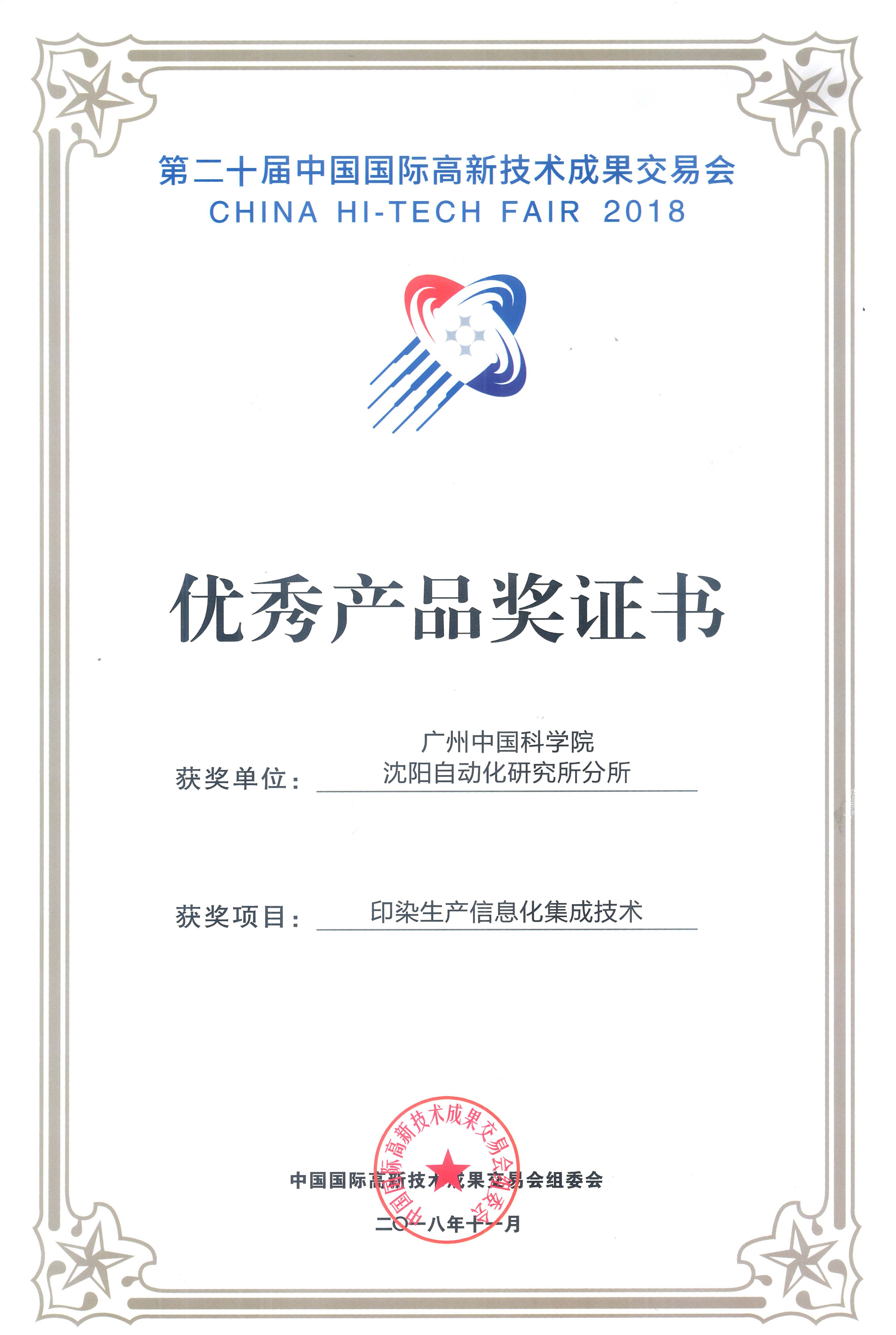11月14日至18日,广州中国科学院沈阳自动化研究所分所(以下简称“广州分所”)携印染生产信息化系统集成解决方案亮相第二十届中国国际高新技术成果交易会(以下简称“高交会”),受到了与会领导、来宾及媒体的广泛关注,该成果荣获本届高交会“优秀产品奖”。