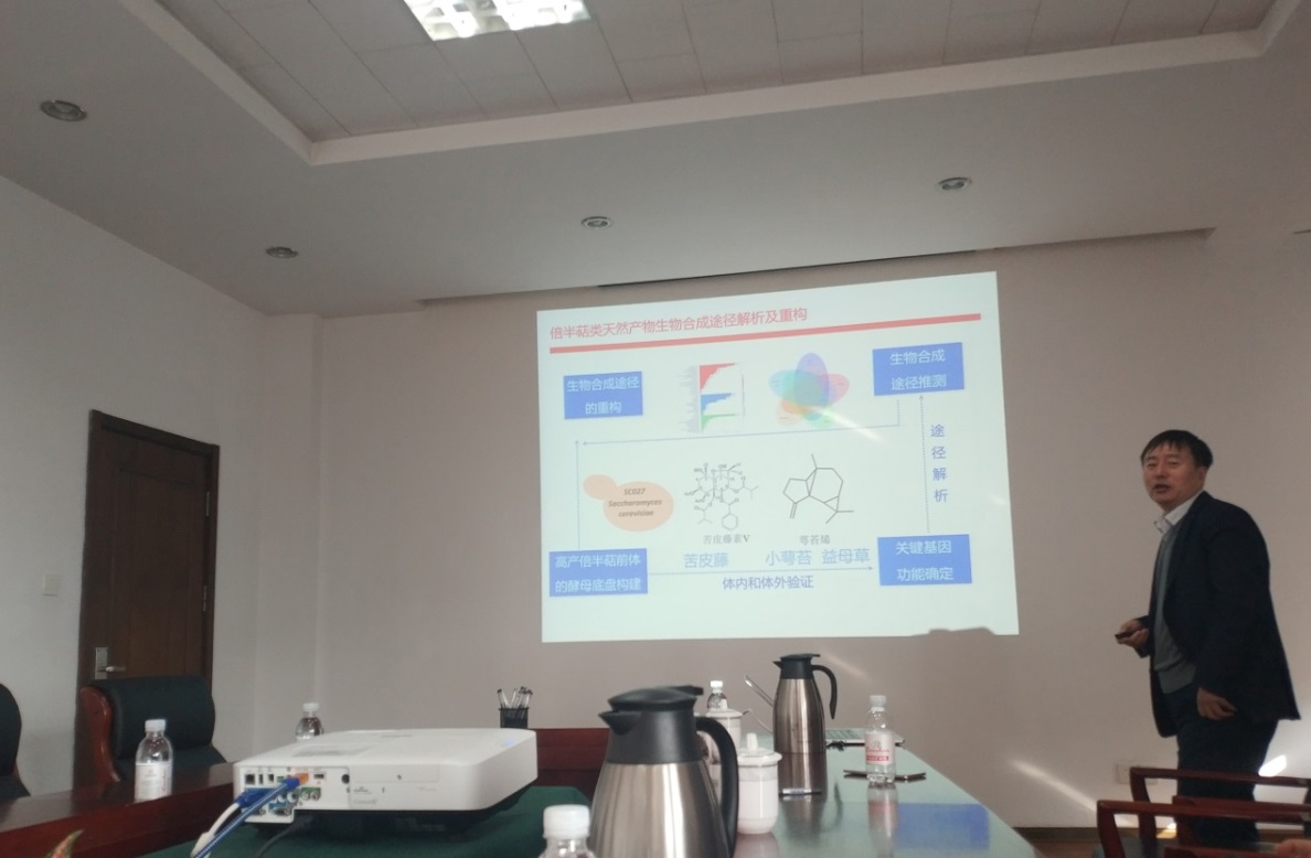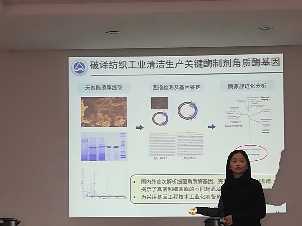 吴敬首先介绍了利用大肠杆菌分泌系统胞外制备工业用酶制剂的新技术与应用,并对如何开发适用于制备工业酶制剂的野生芽胞杆菌宿主的工作进展进行了交流讲解。乔建军讲解了乳酸链球菌细胞壁发育行程机制和耐酸机理的解析及天然药物(如雷公藤素等)的微生物合成技术。会议期间,两位专家结合多年来工作心得,与参会者分享了自己的做法和经验,与相关科研人员就其中关键技术问题进行了探讨交流。