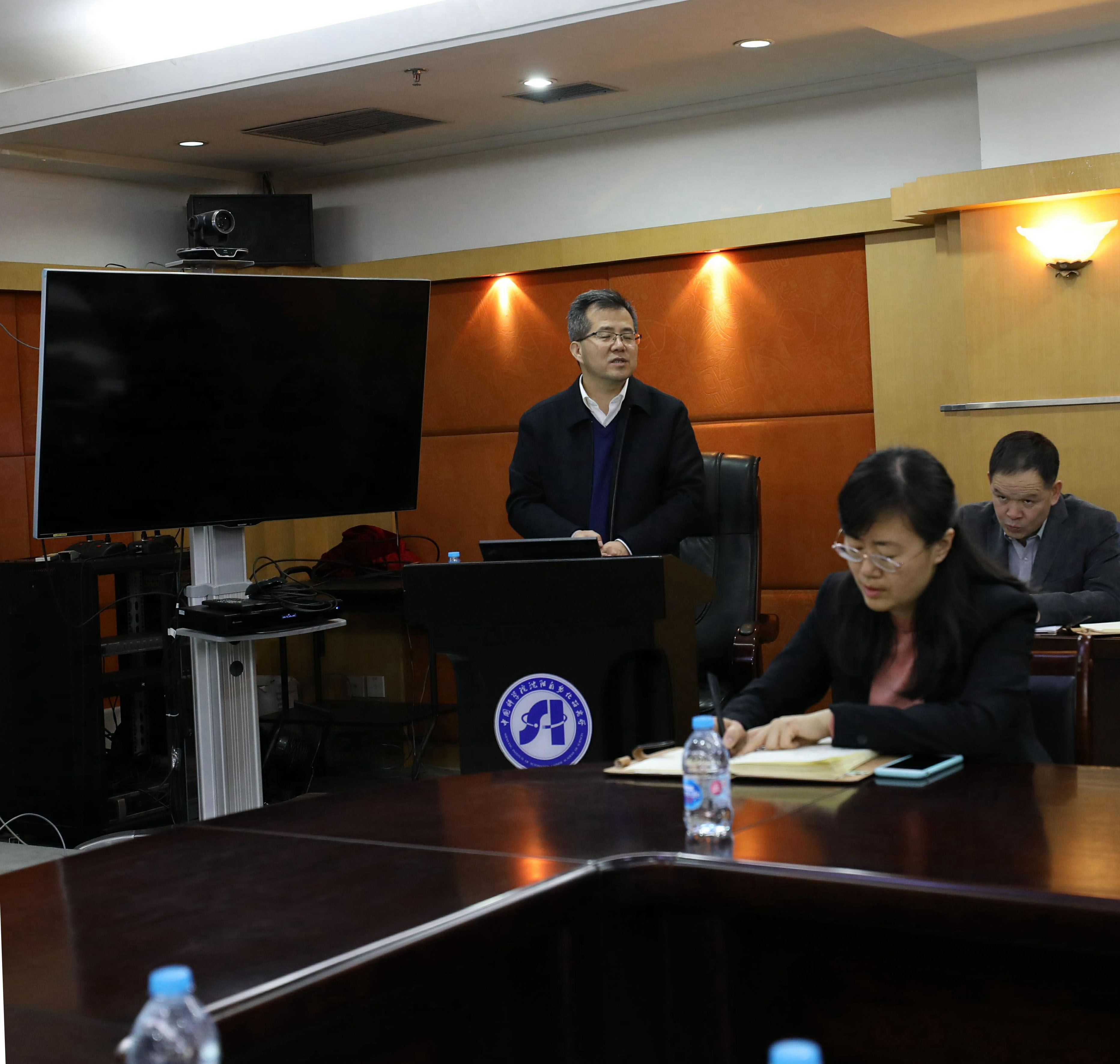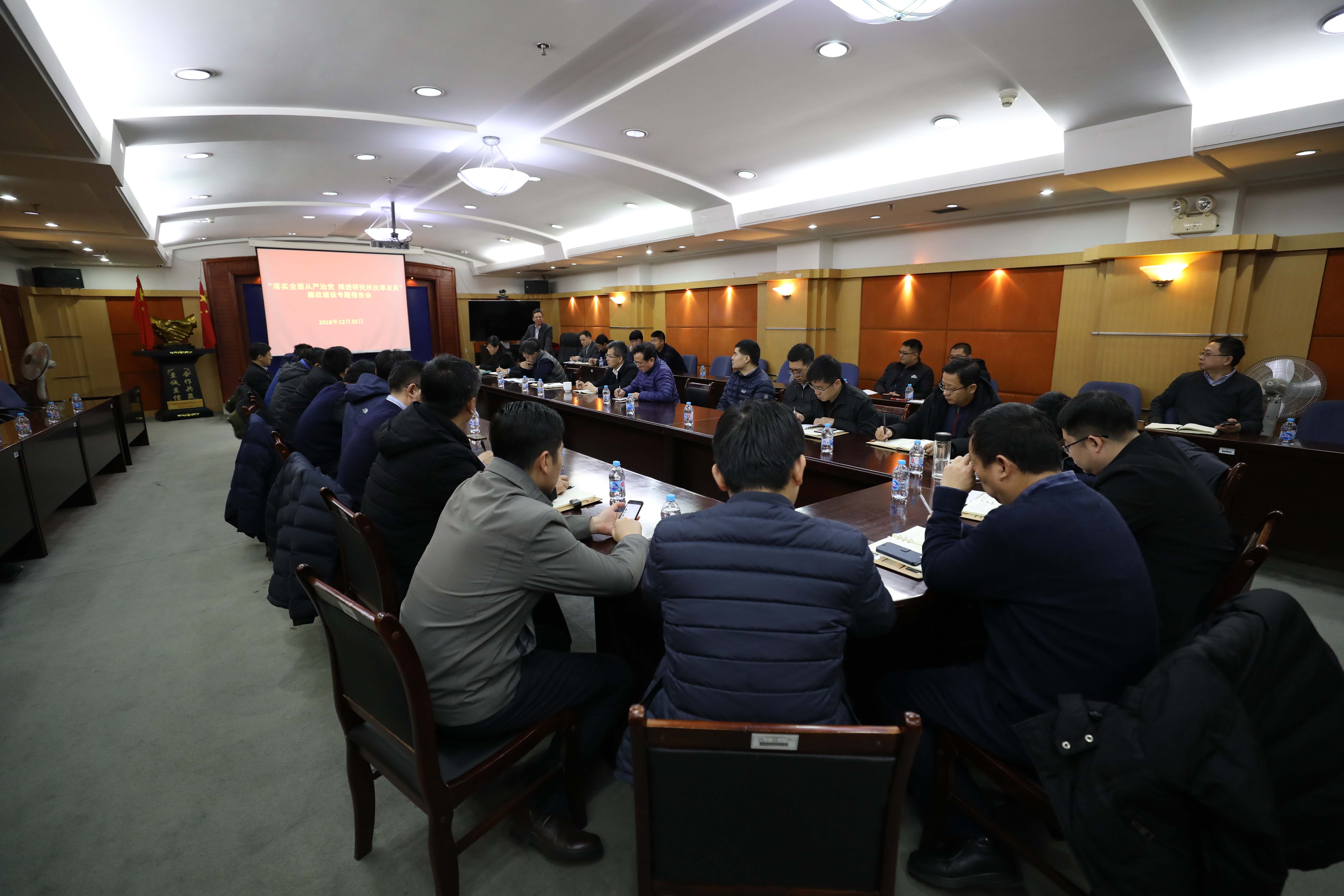 12月25日,为进一步推动全面从严治党向纵深发展,中国科学院沈阳自动化研究所党委举办“落实全面从严治党、推进研究所改革发展”廉政建设专题报告会?;嵋檠胫锌圃豪贾莼锢硌芯克澄笔榧恰⒓臀榧钦懦ご鹤髯ㄌ獗ǜ?。所党委书记兼副所长桑子刚,副所长史泽林,纪委书记梁波,党委副书记、副所长孙雷,以及管理支撑部门负责人、各研究室主任和所内各党支部书记近50人参加了报告会,会议由梁波主持。