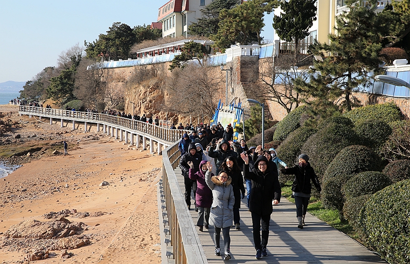 历时一个多小时的健步行活动,为青岛海滨木栈道增添了一道别样的靓丽风景。岁末年底,大家暂时放下手中忙碌的工作,心情放松愉悦地一边欣赏滨海美景和八大关近代建筑,一边与身边友人欢快畅谈,在锻炼身体的同时舒缓了工作压力,放松调节了心情,增进了身心健康,丰富了职工文体生活。