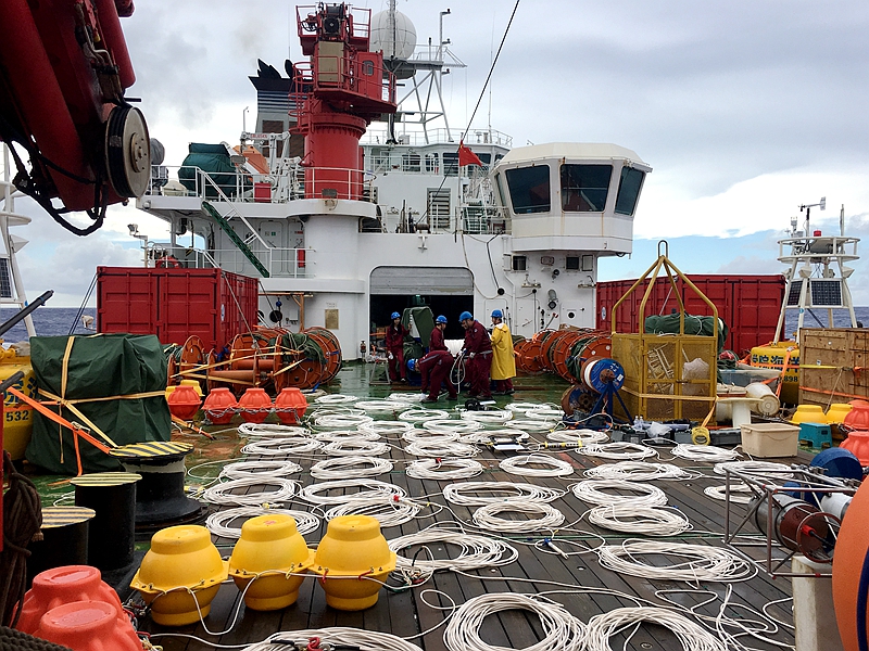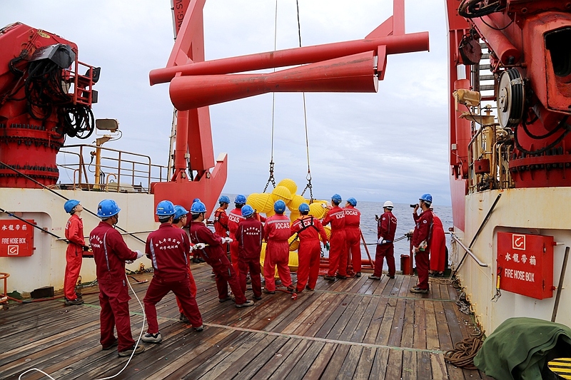航次的另一项重大突破是融合感应耦合和水声通信技术,首次实现了深海6000米大水深数据的实时传输,在大洋上层实现了每100米一个温盐流数据的实时传输,在大洋中深层实现每500米一个温盐流数据的实时传输。6000米深海数据北斗卫星实时通信潜标自布放以来已经安全运行了1个多月,数据回传正常。