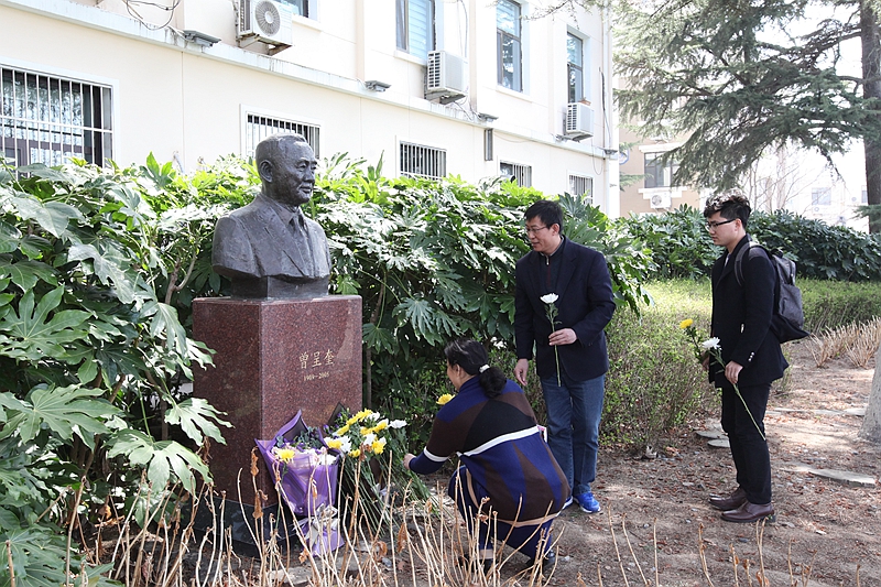 俞志明研究员、袁兆慧助理向曾呈奎先生铜像献花