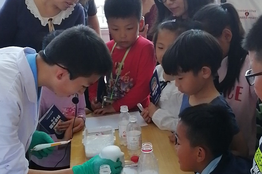 在“科学游园会”环节,各研究组认真准备了各类科学小实验,内容涉及生物、化学等各种科学知识,共有包括“动态甲醛吸附材料”、“植物的‘影分身术’与‘七十二变’”、“与你一生相伴的牙菌‘魔’和‘天使’”、“纳米纤维素的‘魔法变身’”、“‘金谷棒’勇闯‘火焰山’”、“‘膜’法用水之道”、“螺旋藻侠的‘宝藏王国’”等近30个实验。这些科学小实验结合了研究所的特色研究成果,直观形象,互动体验性强,参观过程中,大家不时提问并动手操作,感受科学带来的乐趣和成就感。