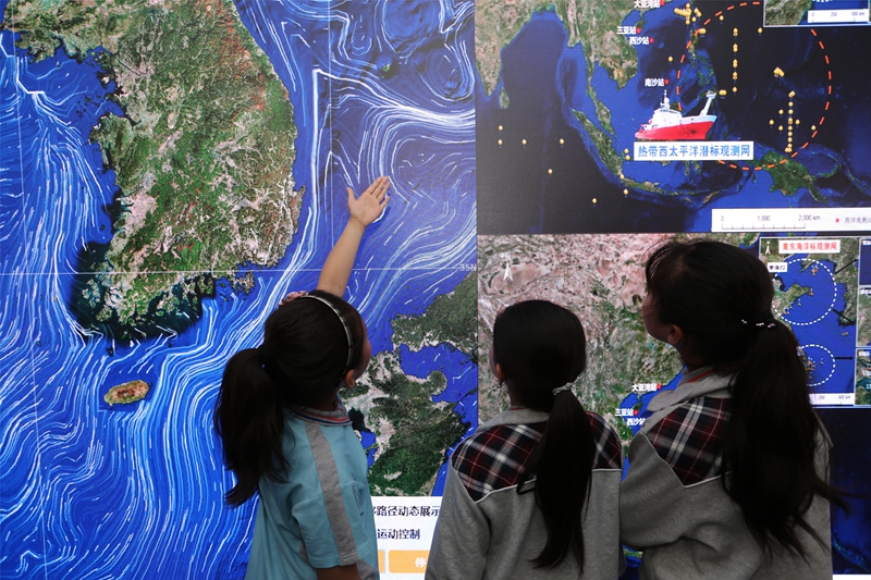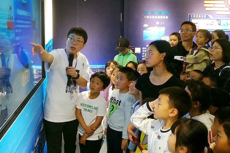 该展厅融合了海洋大数据、人工智能、多维可视化以及新一代通信网络等技术,通过交互式触控屏、三维实体球、LED大屏等多媒体形式集成展示了中科院海洋大科学研究中心的数据资源、数据产品和专题数据应用,内容包括海洋科学考察船队调查航迹、高分辨率海底地形、近海观测浮标、中国近海海洋数值模拟应用以及深??蒲Э疾焓悠档?,引发公众强烈兴趣。