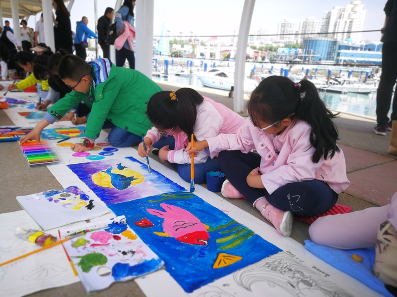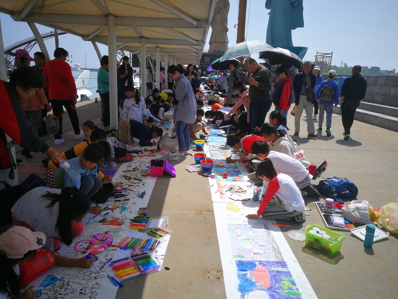 在银海大世界分会场,青岛市中小学生第十一届“我心目中的海洋”主题绘画活动成功举办。来自青岛市10余所学校的100名中小学生代表,或运用水彩,或使用油画棒,用五彩斑斓的色彩描绘出了心目中的海洋世界,一幅幅充满想象力和创造力的画作,充分展示了青岛的海洋文化和同学们关心海洋、热爱海洋的的蓝色情怀。