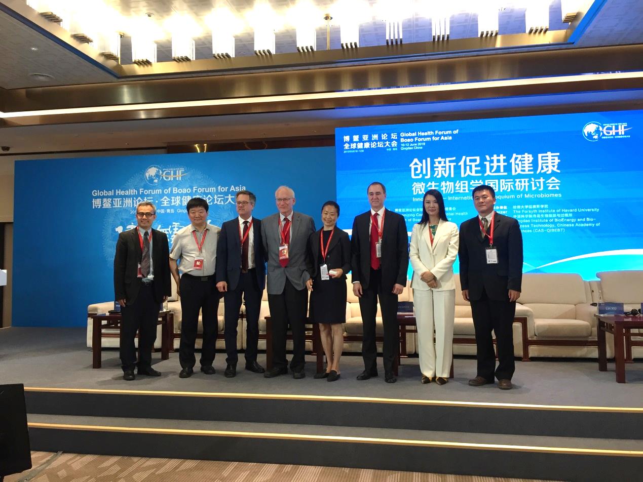青岛能源所应邀与哈佛大学福塞斯学院共同承办第十一场分论坛“创新促进健康——微生物组学国际研讨会”。该论坛旨在更深入地推动微生物组学发展,使之发挥优势造福人类健康。此次研讨会由哈佛大学福赛斯学院院长施文元教授主持?;嵋檠氲轿⑸锛懊庖哐Ъ?、美国科学院院士Jeff Miller教授,哈佛大学医学院教授、美国科学院院士John Mekalanos,美国Brigham Health International副总裁Mark Davis,青岛能源所单细胞研究中心主任徐健研究员,VIVA营养CEO徐琳女士,安芙兰资本创始人周伟丽女士等嘉宾出席。