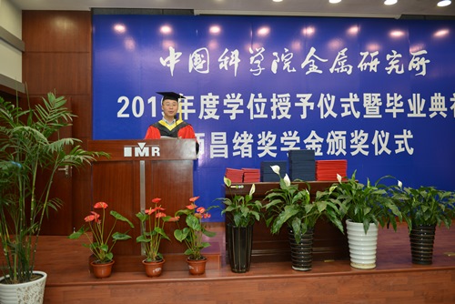 在激昂的国歌声中,毕业典礼拉开了帷幕。副所长刘岗研究员宣读了2019年度授予学位的决议和毕业生名单。本年度金属所共有157名同学毕业,其中博士生110名、硕士生47名。