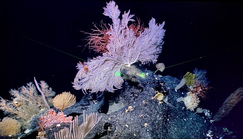 航次中发现了稀有的海蛞蝓,未知的珊瑚、马蹄螺、深海扇贝、多毛类、海鞘等罕见深海生物,在寡营养海域的海山发现多片五彩斑斓的珊瑚林,看到了多种深海生物的共存共生现象,并观察到了深海虾孵卵及海星摄食柳珊瑚的现象。
