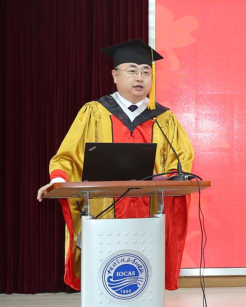 王凡所长代表所党政班子致辞,对同学们顺利完成学业表示衷心祝贺,向悉心指导、勤恳敬业的导师们表示衷心感谢。他表示,十八大以来,党和国家十分重视海洋事业发展,习总书记发表的系列重要论述为海洋强国建设指引了方向。作为国家战略科技力量,中国科学院积极响应国家号召,集聚全院优势涉海科研力量、依托海洋所建设海洋大科学研究中心。筹建一年多来,中心在体制机制改革、创新平台建设、重大项目策划、科研团队集聚和服务地方经济发展等各方面都取得了显著进展,为建设海洋强国、推进山东新旧动能转换和加速青岛“海洋攻势”提供创新动力。