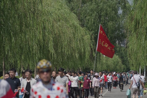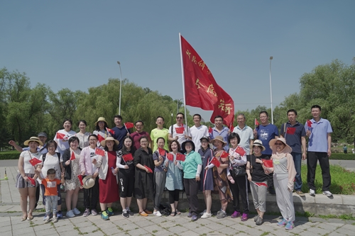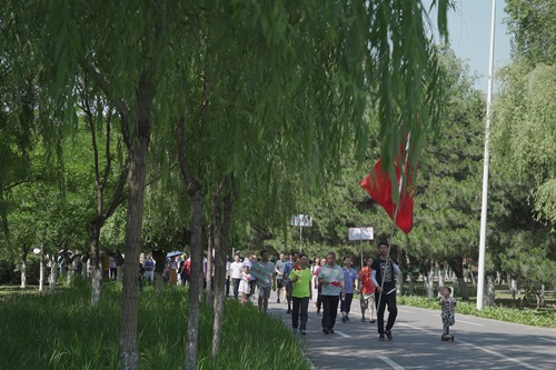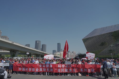 全体人员在金属所旗帜的引领下迈开矫健的步伐,向目标阔步前行。一路上,微风轻拂、丝绦拂堤、繁花相随、景色宜人,大家精神饱满,心情舒畅。在热烈而温馨的气氛中,浩浩荡荡的队伍宛如一条长龙,蜿蜒盘绕在美丽的沈水河畔。在金戈铁马的秦开塑像前和北门转盘处,大家自发聚集在金属所旗帜下合影留念。