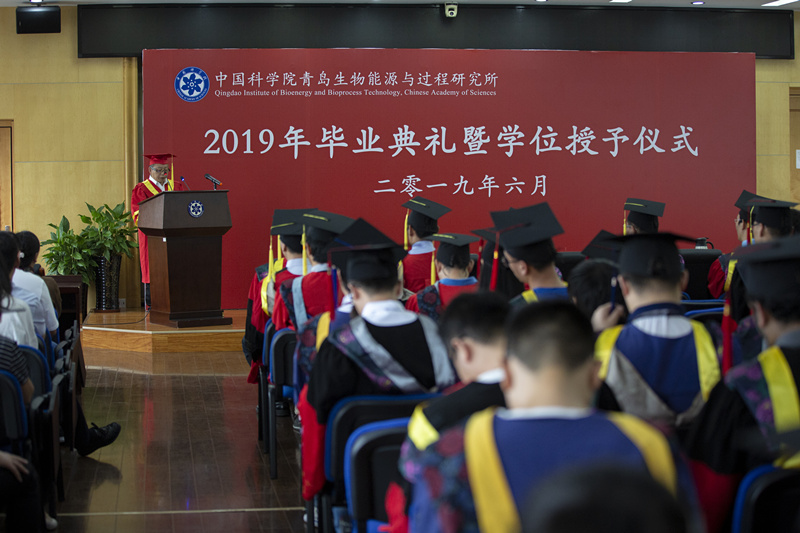 随后,刘中民为典礼致辞。向毕业生及家人表示衷心的祝贺,向教书育人、悉心培养人才的导师们表示感谢。他在致辞中指出,研究所积极落实习近平总书记提出的“在我国科技创新活动中,新型举国体制是实施国家重大科技项目的‘金钥匙’”的要求和号召,于今年6月17日,山东省、中科院、青岛市三方正式签署协议共建山东能源研究院,当前,青岛能源所迎来了前所未有的发展机遇,为青年人提供了施展才华的广阔舞台。期待毕业生们有理想有追求,以国家兴亡、匹夫有责的情怀,把个人的理想抱负融入到国家发展的洪流中,去追逐中华民族伟大复兴的梦想,为人类文明进步贡献力量。最后,衷心祝愿毕业生们,勇于科技创新,搏击长空、鹏程万里!
