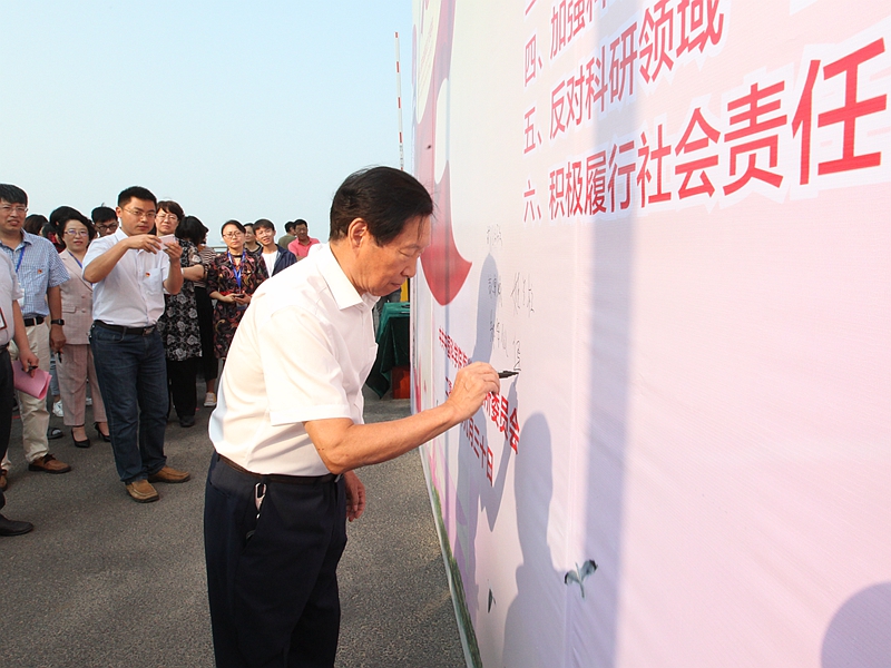 为弘扬科学家精神,加强作风和学风建设,升旗仪式结束后,海洋所举行了“弘扬科学精神、树立良好作风学风”倡议书签名活动,海洋所郑守仪院士、胡敦欣院士、侯保荣院士等带头在倡议书上签名。
