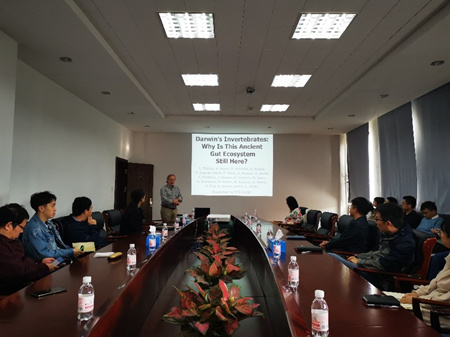 Drake首先做了题为“Darwin’s Invertebrates: Why Is This Primitive Gut Ecosystem Still Here?”的学术报告,详细介绍了他40年以来对生物与环境相互作用关系的理解,重点介绍了蚯蚓肠道如何作为暂时的微生物生存绿洲,提供丰富的碳源;如何对不同种类的微生物进行选择性的富集,改变土壤中微生物多样性和结构的过程,并对整个过程中的反硝化作用、甲烷合成作用、发酵过程以及温室气体生成机理进行了详细的阐述。随后,Drake根据多年担任AEM期刊主编的审稿经验,做了题为“The Art of Scientific Publishing”的报告,特别指出科研工作者要具备应有的学术道德,耐心讲述论文写作中应该注意的问题,详细指导如何将选择题目、编写摘要,如何将获得的实验数据和结果总结为精彩的论文并成功发表。