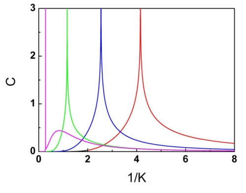 三维伊辛模型的精确解:不同相互作用参数条件下比热与温度的依赖关系