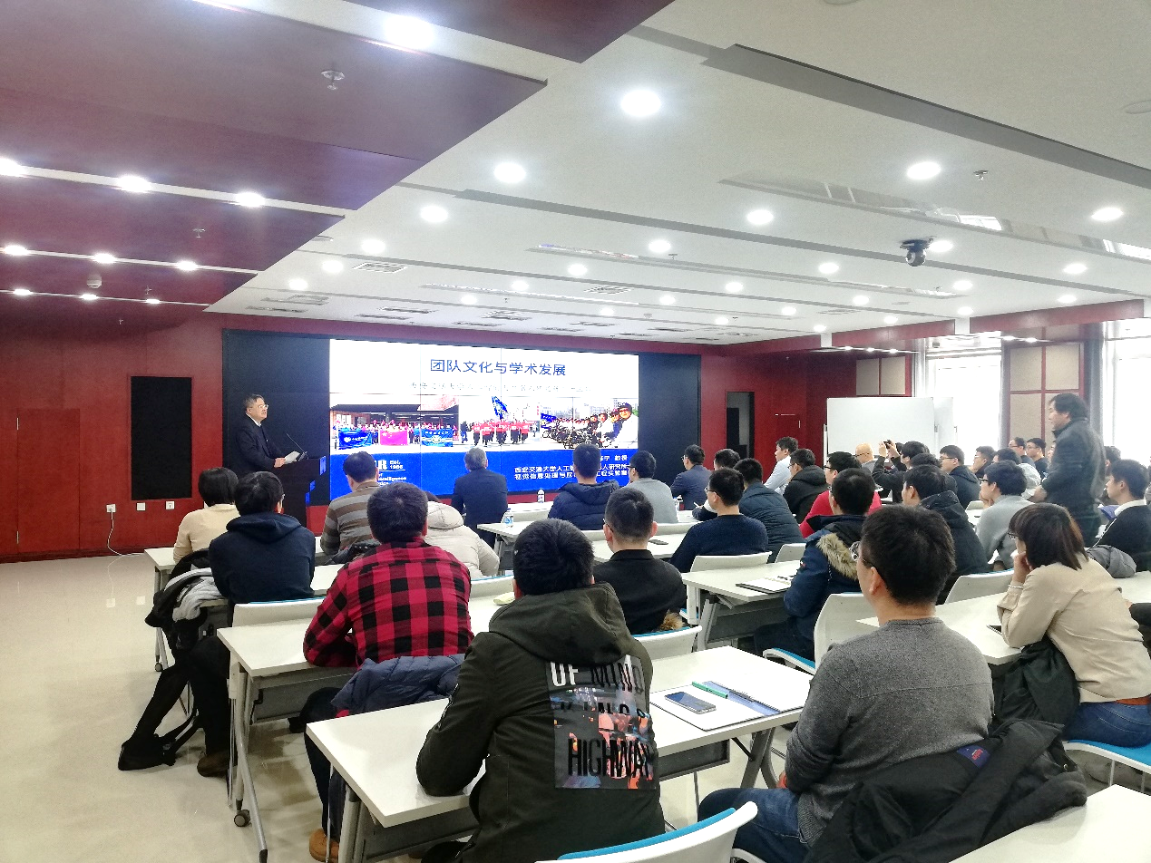 郑南宁在报告中围绕团队发展与文化建设,首先介绍了人工智能与机器人研究所(西安交通大学在人工智能领域第一个专职科研机构,简称“人机所”)研究团队。多年来,他带领团队对模式识别与智能系统、机器视觉与图像处理等重要领域的应用基础理论及其工程应用进行了长期、系统的创新性研究,为中国模式识别与人工智能和图像处理学科及工程技术的发展做出了突出贡献。
