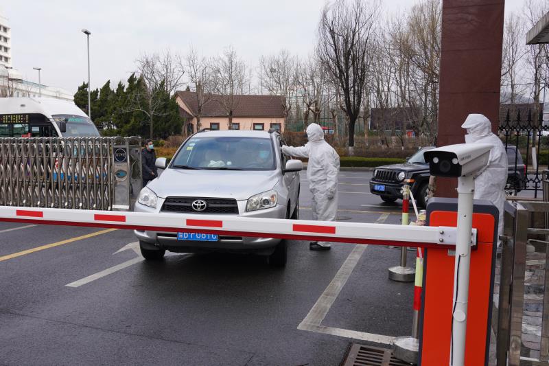 门岗对入所职工进行体温检测