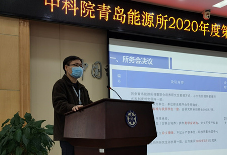 4月21日上午,青岛能源所召开2020年第一季度情况通报会,研究所所领导、党委委员、纪委委员,研究室主任、研究组组长,职能部门负责人、副处长,研究室及职能部门党支部书记,职代会主席团,研究生会代表等70余人参加了会议?;嵋橛傻澄笔榧恰⒓臀榧欠氚I鞒?。