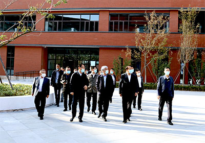 调研期间,丁仲礼一行深入国科大能源学院的办公培训楼、各实验楼和教学楼、报告厅、图书馆、会议室等建筑区域进行了实地考察。三寰集团有限公司董事长关健全程介绍了国科大能源学院的建设内容、功能和进展,以及英歌石科技城的整体规划,同时就国科大能源学院的周边环境、地形地质状况、建筑材料材质、生活交通配套等情况进行了说明。