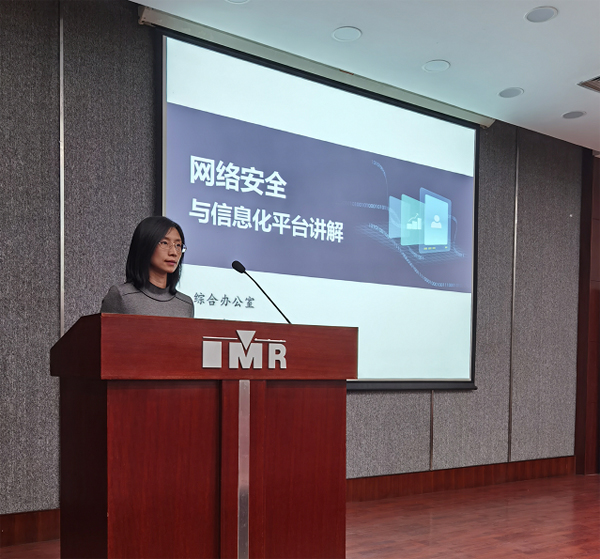 信息化办公室主任李文菲作《网络安全与信息化平台讲解》报告