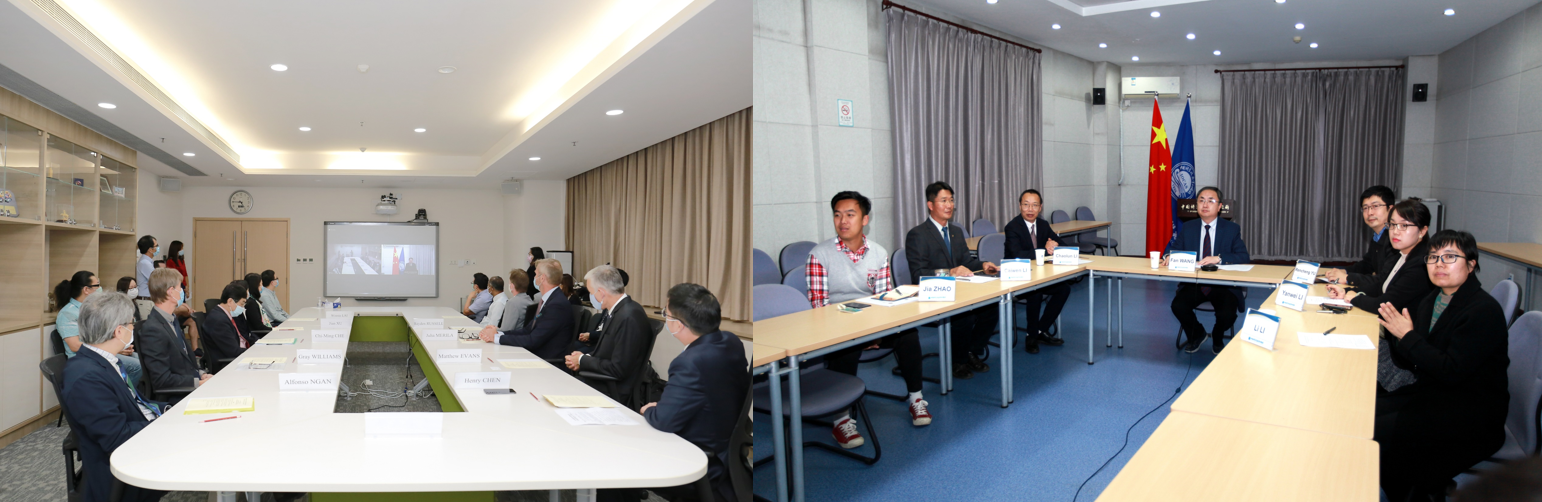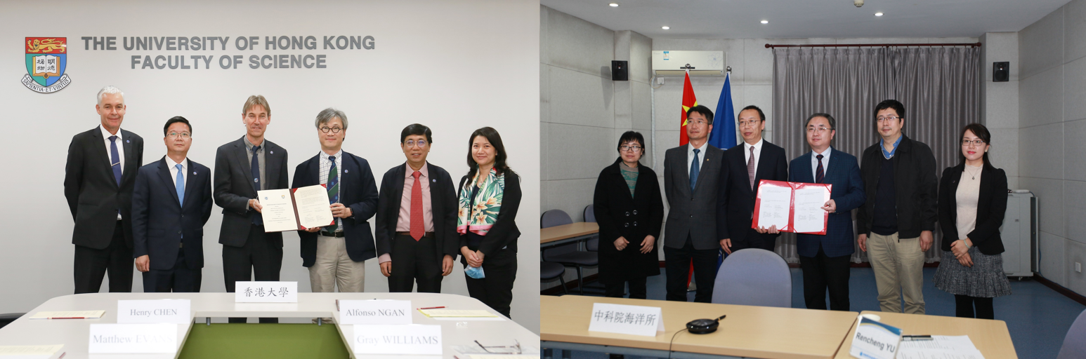 11月24日,通过香港、青岛两地视频接入,中科院海洋所与香港大学在线签署关于建立“海洋生态与环境科学联合实验室”的合作备忘录。香港中联办教育科技部处长陈恒,香港大学副校长颜庆云、支志明院士、理学院院长Matthew Evans、太古海洋研究所所长Gray Williams,海洋所所长王凡、副所长李超伦、所务委员于仁成、国际合作办公室及相关科学家参加视频签约会。