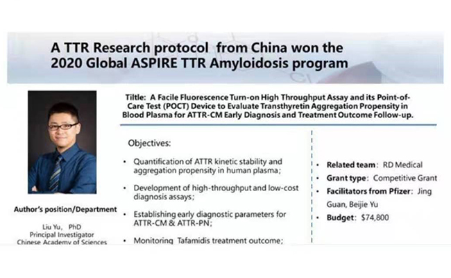 辉瑞ASPIRE Award通过国际专家函评,筛选并支持全球优秀青年科学家针对重大疾病的发病机制、治疗和预防等方面开展相关转化医学研究。大连化物所参评的“转甲状腺素蛋白淀粉样变的早期诊断方法”为中国区今年唯一入选成果。
