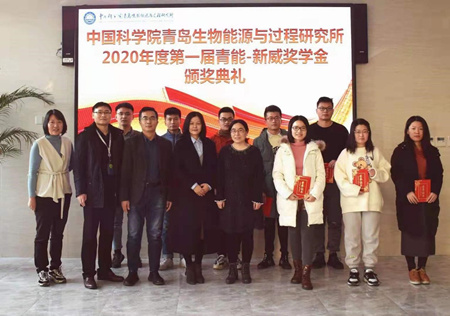 12月15日,首届“青能-新威奖学金”颁奖典礼在青岛能源所隆重举行。深圳市新威尔电子有限公司吴红娟女士、研究所先进储能技术研究室主任崔光磊研究员、人事教育处副处长苏华、获奖同学和研究生代表出席了典礼。