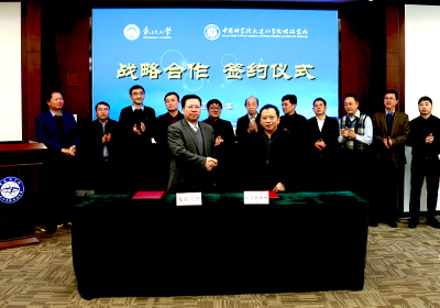 3月1日,中国科学院大连化学物理研究所与东北大学战略合作协议签约仪式在大连化物所举行。东北大学副校长唐立新院士,王国栋院士,以及科学技术研究院、低碳钢铁前沿技术研究院等相关负责人;大连化物所所长刘中民院士,科研及职能部门相关人员参加了签约仪式。唐立新和刘中民代表双方签订了战略合作协议。