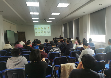在安全培训中,董佳结合现场检查情况,从?;饭芾?、危险实验管理、设备管理、个人防护、国家安全、交通安全等方面,通过安全管理知识讲解、事故图片展示、以及近两年部分有代表性的安全事故案例分析,介绍了安全管理经验,强调了日常注意事项。培训过程中,参会人员还就实验室日常安全管理工作进行了交流讨论。