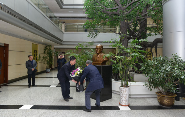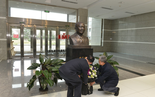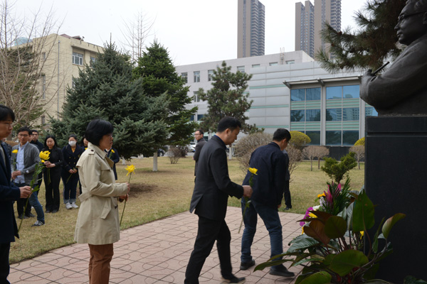 左良所长、孙晓峰副所长共同为李薰先生、葛庭燧先生、师昌绪先生、郭可信先生塑像敬献了花篮,青年职工和研究生向塑像敬献了菊花,大家向塑像鞠躬,表达了对金属所前辈们的崇高敬意和深切怀念。