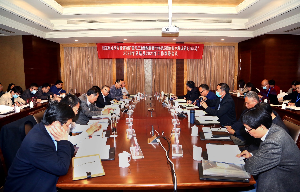 3月30日,国家重点研发计划“主要经济作物优质高产与产业提质增效科技创新”专项 “黄河三角洲耐盐碱作物提质增效技术集成研究与示范”项目阶段总结交流暨2021年工作部署会议在黄河三角洲农高示范区召开。江南大学金征宇教授、中国农业科学院刁现民研究员、中国科学院遗传与发育生物学研究所农业资源研究中心刘小京研究员、中国科学院地理科学与资源研究所欧阳竹研究员、山东省农业科学院刘兆辉研究员作为项目咨询专家与会指导。项目各课题负责人及科研骨干40余人参加会议。中国科学院科技促进发展局项目主管段瑞,中国科学院烟台海岸带研究所常务副所长杨红生、原党委书记高玲瑜,黄河三角洲农业高新技术产业示范区管委会副主任毕建明出席会议。项目依托单位中国科学院烟台海岸带研究所科技处处长王德主持会议。