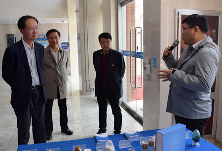4月8日,山东省政协副主席韩金峰一行来青岛能源所调研,详细了解研究所发展及山东能源研究院建设情况,并参观了实验室。