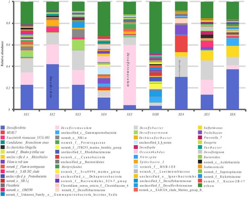 钢铁腐蚀锈层中细菌群落在属水平上的相对丰度