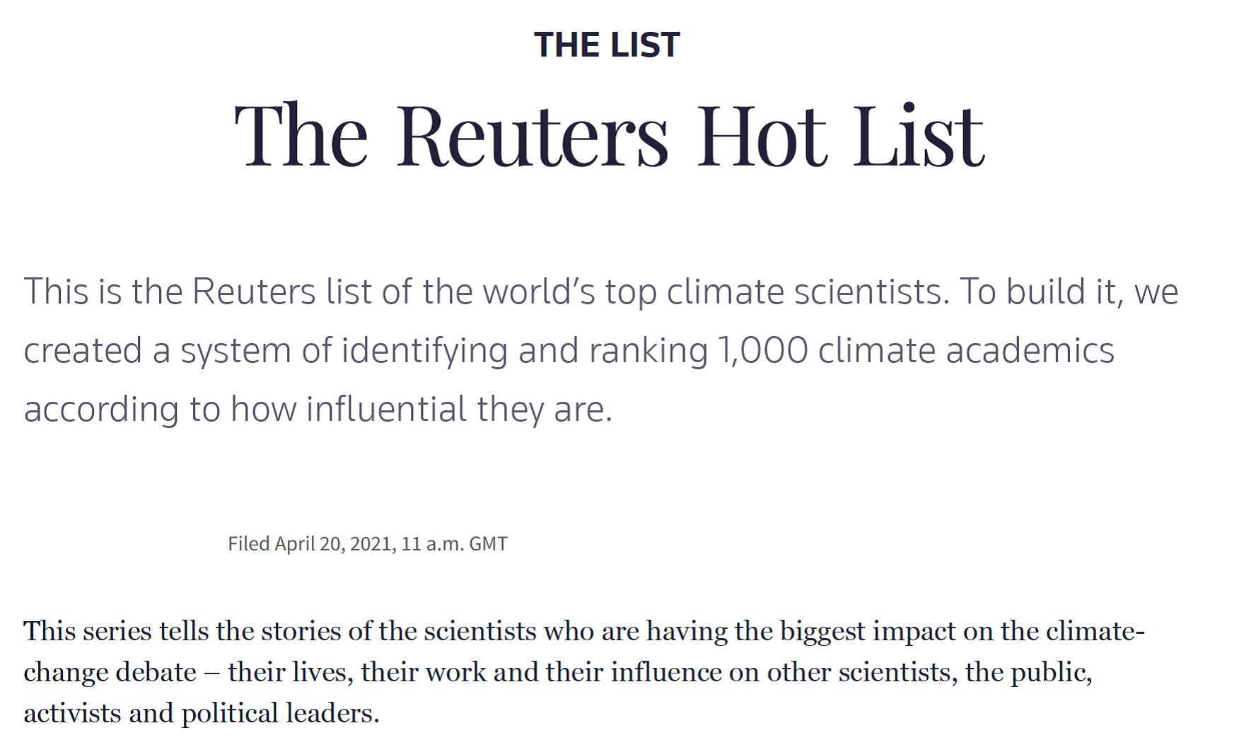 英国路透社根据最新的科学家影响力评价系统,综合评估了气候变化研究领域科学家的影响力,并发布全球最具影响力的1000位科学家名单。共有来自48个高校和科研院所的90名中国科学家入选该名单,中国科学院海洋研究所张荣华研究员入选。