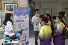 在“有趣的实验动手做”环节,研究所科研人员认真准备了各类科学实验,内容涉及生物、化学化工、材料等科学知识。学生们在吉祥物“清清”带领下探秘实验室,包括“小”电池,“大”奥秘 、金谷棒勇闯火焰山 八卦炉内炼乌丹 、“膜”法世界助力“碳中和”——认识二氧化碳和氧气、科学家的武器:大型科研仪器、看清最小的东西:电子显微镜/揭秘奇妙的分子结构:红外光和光谱、与你一生相伴的牙菌“魔”和“天使” 、洋葱保卫战、见微知“藻” 、我是小小科学家。通过实验展示和原理解读将科学知识传递给公众,直观形象、生动有趣。
