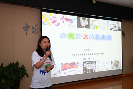 在“好看的舞台剧”环节,所内职工、研究生精心准备了《科学家屠呦呦》的舞台剧,通过演绎优秀科学家故事,传播科学理念,弘扬科学家精神,号召青少年向优秀科学家学习,成为一名有担当、有责任、有理想、有志气的中国好少年。在“涨知识的科普讲座”环节,我所刘亚君研究员以 “亦友亦敌的抗生素”为题,向青少年讲解什么是抗生素、抗生素是如何发现的以及抗生素是怎么样保护我们的。报告应用大量实例、视频动画展示并紧密结合日常生活,受到学生的热烈欢迎,学生们积极互动,现场气氛活跃。