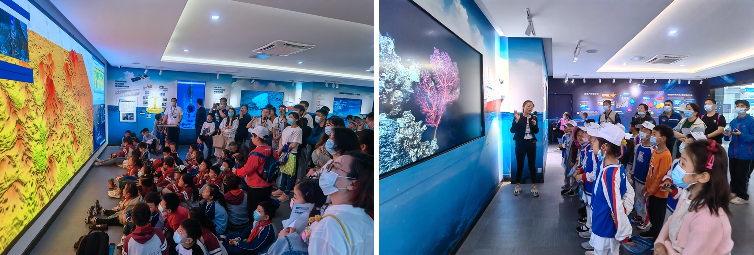 在海洋人工智能与大数据中心展厅,通过海洋数据可视化演示系统,公众看到了洋流、温度、盐度等海洋要素的全球分布,了解了人工智能在科学研究以及服务经济社会发展方面的实际应用,也看到了利用“发现”号无人深潜器拍摄到的深??瓶际悠担诿俏薏痪居诳萍际侄蔚慕?,震惊于幽幽深海中的生物竟如此多彩、各异而美丽,沉醉于大自然巧夺天工的天然呈现。