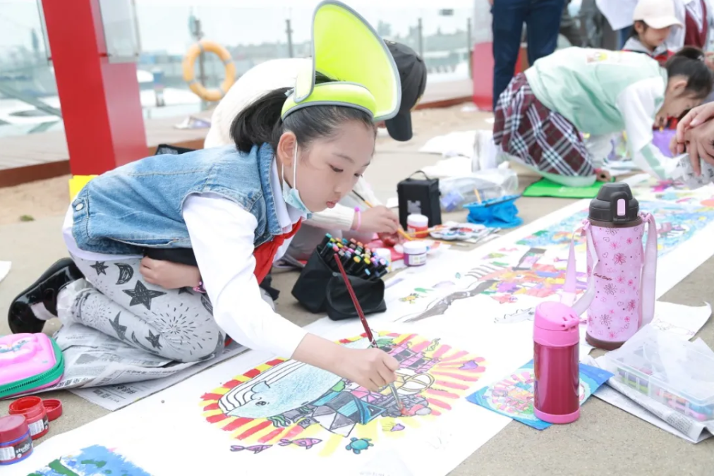 启动仪式上,颁发了青岛市第六届中小学海洋节奖项。启动仪式后,来自市区部分学校的100余名学生代表以“童心向党、筑梦海洋——我心目中的海洋”为主题,在百米长卷上现场作画,以手中的多彩画笔抒发对海洋的关注、热爱和?;ぶ椋蕴赜械姆绞蕉裙桓瞿淹摹傲弧倍?。