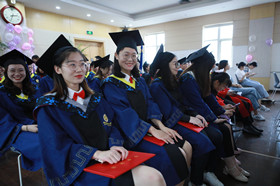 在欢快的乐曲声中,毕业生导师亲自为学生颁发了毕业证书,吕雪峰为毕业生一一拨穗扶正流苏,授予学位。