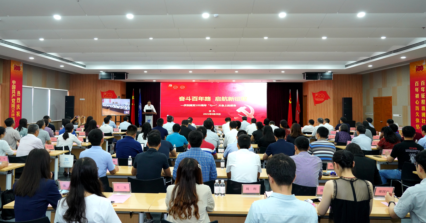 6月29日上午,中国科学院海洋研究所隆重举行庆祝中国共产党成立100周年“七一”大会,回顾建党百年历程,表彰先进典型。所党政领导班子成员、中层干部、党支部书记、党代表、受表彰集体及个人等参加大会。党委副书记、纪委书记毕伟同志主持会议。