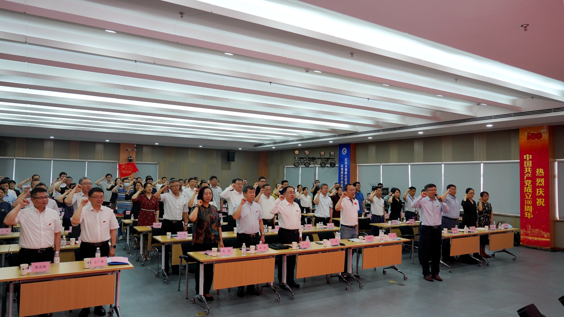 会上,由党委书记王辉同志领誓,全体党员重温入党誓词,再一次庄严向党旗宣誓,表达对党的忠诚和为党的事业奋斗的决心。