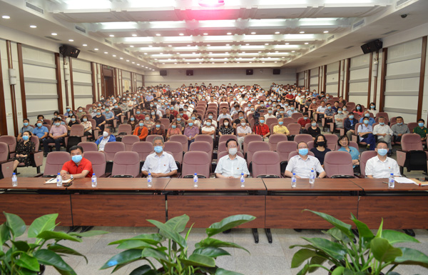7月1日上午8时,所党委在文化路园区学术报告厅隆重举行庆祝中国共产党成立100周年大会暨弘扬科学家精神报告会。在所党政班子成员、党总支和党支部委员、职工党员等共计300余人参加会议?;嵋橛傻澄榧恰⒏彼ば煅彝局鞒?。