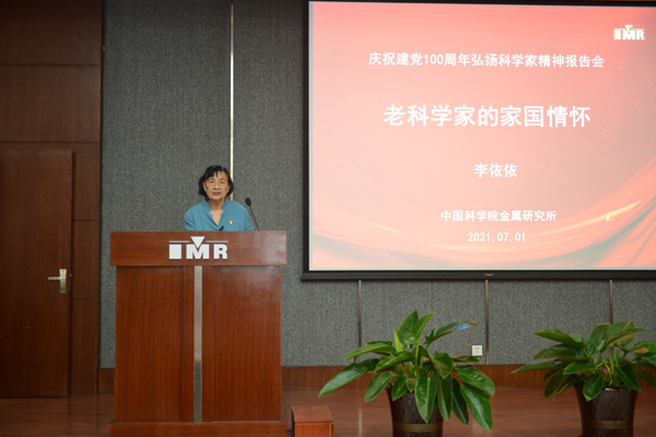 随后,李依依院士作了题为《老科学家的家国情怀》的专题报告,李院士结合自己的亲身经历,深情讲述了我所李薰、师昌绪、郭可信等老一辈科学家时刻牢记自己是中国人,冲破重重阻碍归国效力,为祖国科技事业发展做出重要贡献生动而感人的事迹。
