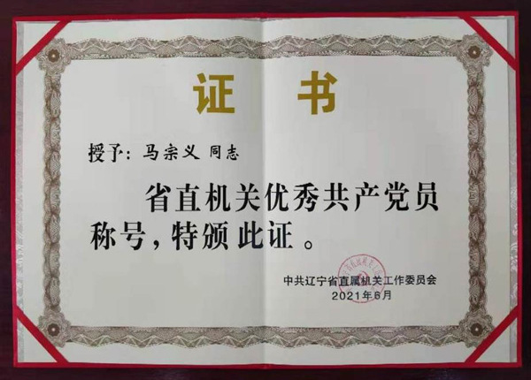 在中国共产党成立100周年之际,辽宁省直机关工作委员会表彰了一批优秀共产党员、优秀党务工作者和先进基层党组织。我所师昌绪先进材料创新中心材料制备与加工研究部马宗义研究员荣获辽宁省直属机关“优秀共产党员”荣誉称号。