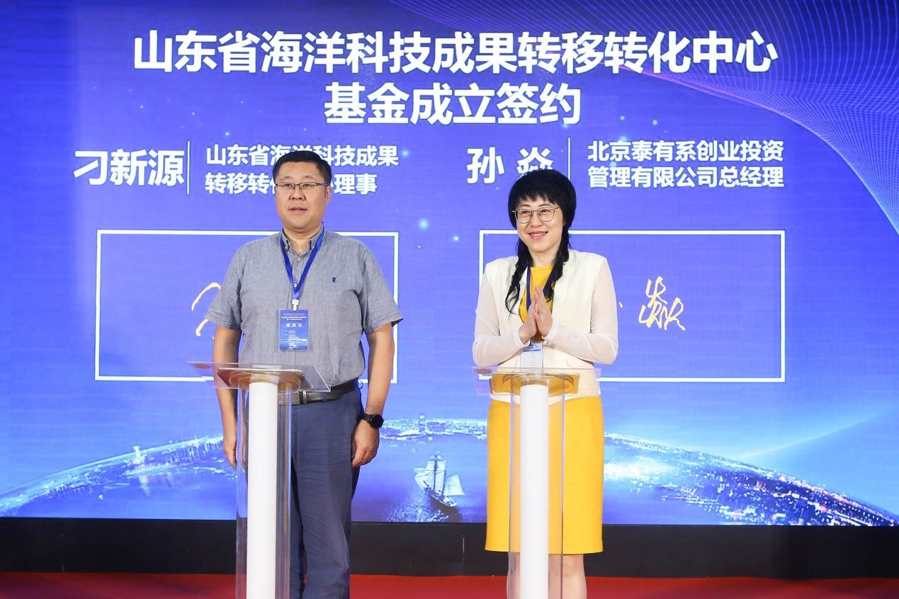 会上进行了山东省海洋科技成果转移转化中心基金签约仪式。山东省海洋科技成果转移转化中心联合北京泰有系创业投资管理有限公司和广东创新创业科技服务有限公司,发起成立海洋共同体基金暨青岛泰广赋能基金。海洋共同体基金首期规模2亿元?;鹁劢购Q笥部萍?,对标科创板,重点支持原始创新、海洋成果转化和高端海洋科技产业化项目培育。重点关注领域包括:海洋仪器仪表装备、海洋大数据和信息技术、海洋医药与生物制品、海洋环境?;?、现代海洋农业等。将为打通海洋科技成果转化最后一公里,建立海洋科技成果转化完整链条,提供多元化资金支持。