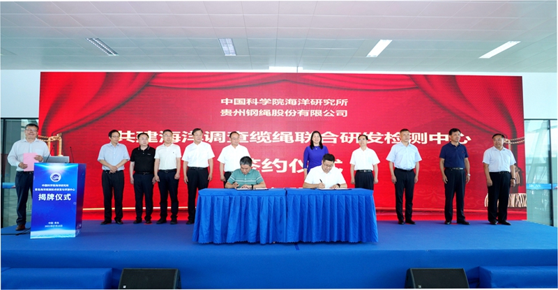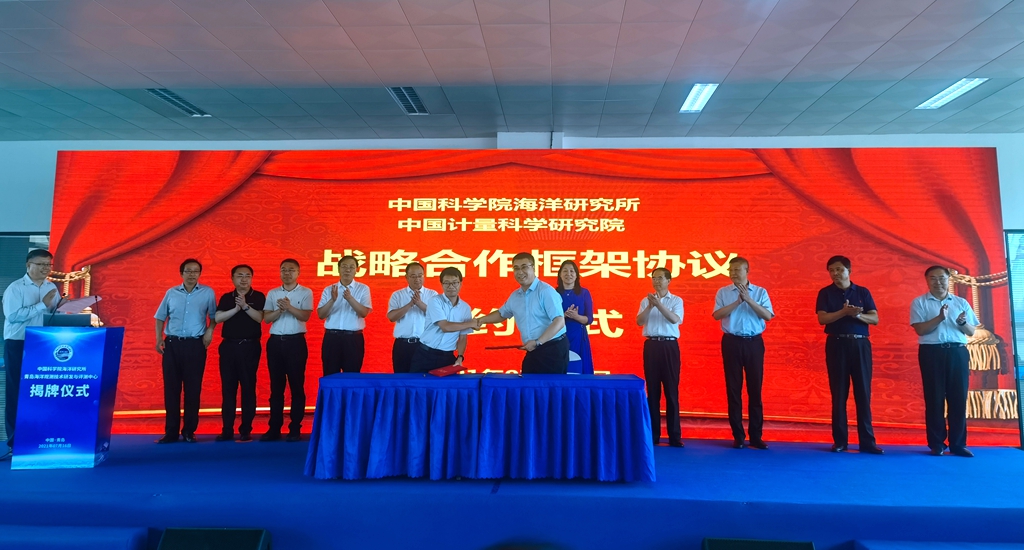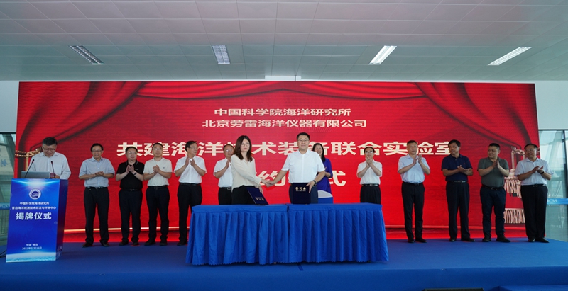 仪式上,中国科学院海洋研究所分别与中国计量科学研究院、中国海洋工程研究院(青岛)、贵州钢绳股份有限公司、北京劳雷海洋仪器有限公司、中国地质调查局青岛海洋地质研究所、挪威Aanderaa公司、德国CONTROS公司等签约,并为共建的安德拉技术支持与服务中心、康楚斯技术支持与服务中心、海洋仪器计量校准联合实验室、海洋调查缆绳联合研发检测中心、海洋技术装备联合实验室等5个实验室揭牌。