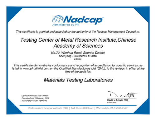 7月28日,金属所检测中心顺利通过由三方独立审查协会PRI(Performance Review Institute)组织的Nadcap体系审核,并获得PRI颁发的Nadcap-MTL(材料测试实验室)证书。