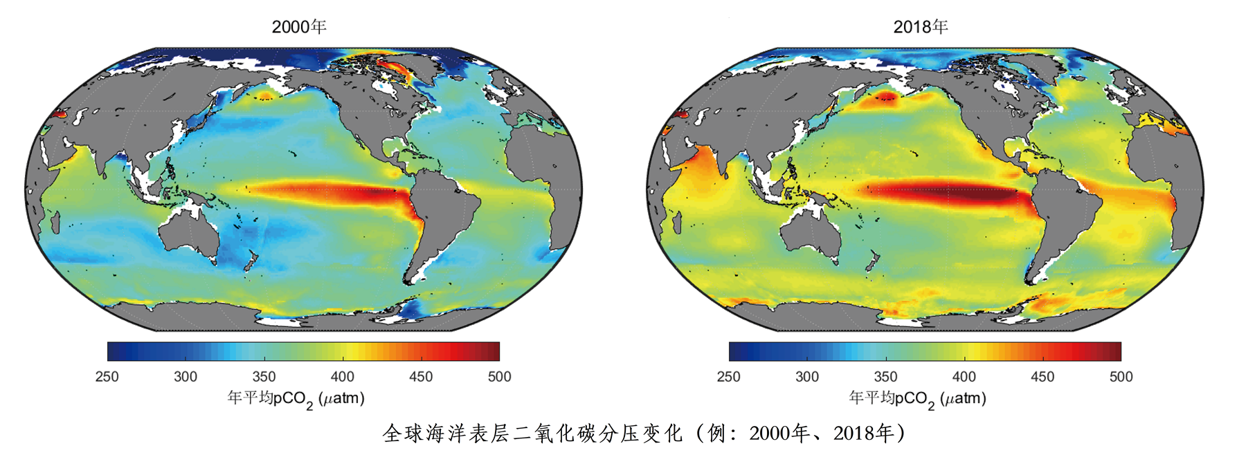 2000-2018年全球海洋表层二氧化碳分压变化