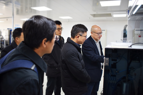 调研期间,丁赤飚一行现场调研了我所(含能)材料生物合成技术中心、泛能源大数据与战略研究中心、固态能源系统技术中心、微生物制造工程中心、单细胞中心。