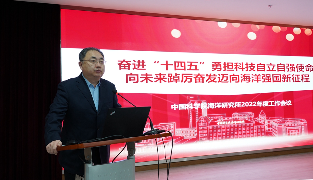 所长王凡做题为“奋进‘十四五’勇??萍甲粤⒆郧渴姑?,向未来踔厉奋发迈向海洋强国新征程”的海洋所年度工作报告,以及“奋进‘十四五’,开启新征程”的烟台海岸带所年度工作报告,全面总结了两所2021年的工作,对照习近平总书记重要指示批示精神和党中央、国务院重大决策部署,对标“四个率先”和“两加快一努力”目标要求及院党组部署要求,深入分析了研究所存在的差距和不足,并对2022年的重点工作进行了部署。