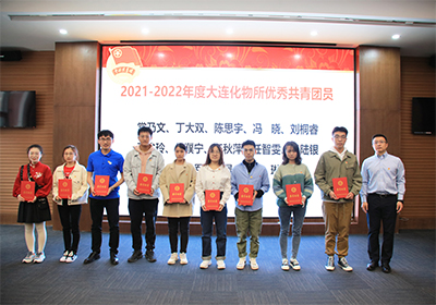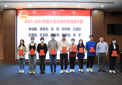 本次会议的主题是“喜迎二十大,永远跟党走,奋进新征程”。奏唱国歌后,团委书记熊川男宣读 “中科院五四青年奖章”“中科院五四红旗团委”“大连化物所先进团支部”“大连化物所优秀团干部”“大连化物所优秀团员”的表彰名单。金玉奇、梁波、办公室主任李振涛、党委办公室王书诏和熊川男分别为获奖集体与个人颁发荣誉证书。